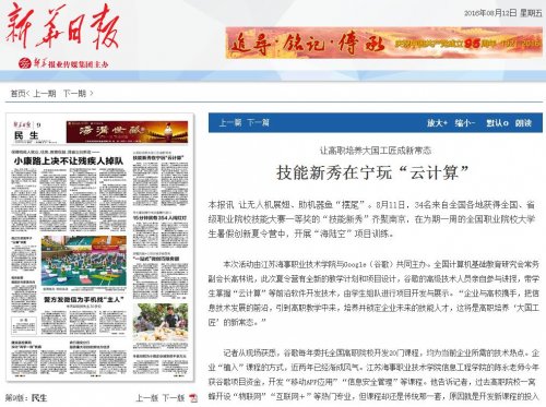 新华日报——让高职培养大国工匠成新常态技能新秀在宁玩“云计算”
