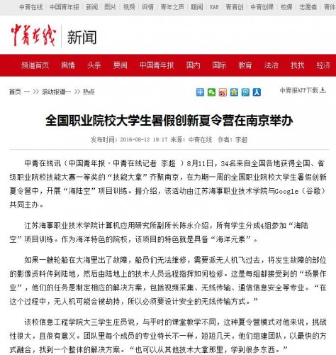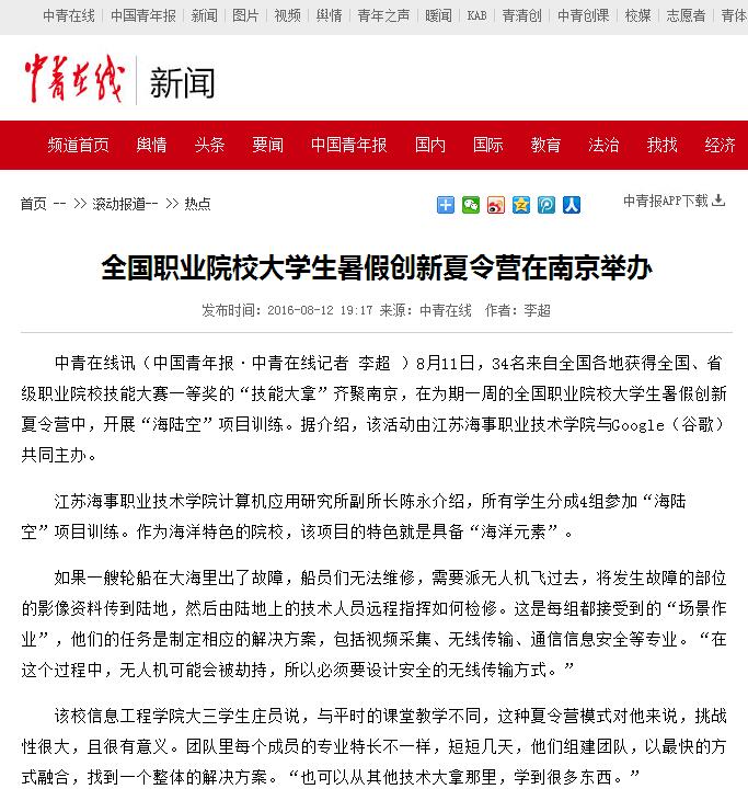 中青在线——全国职业院校大学生暑假创新夏令营在南京举办