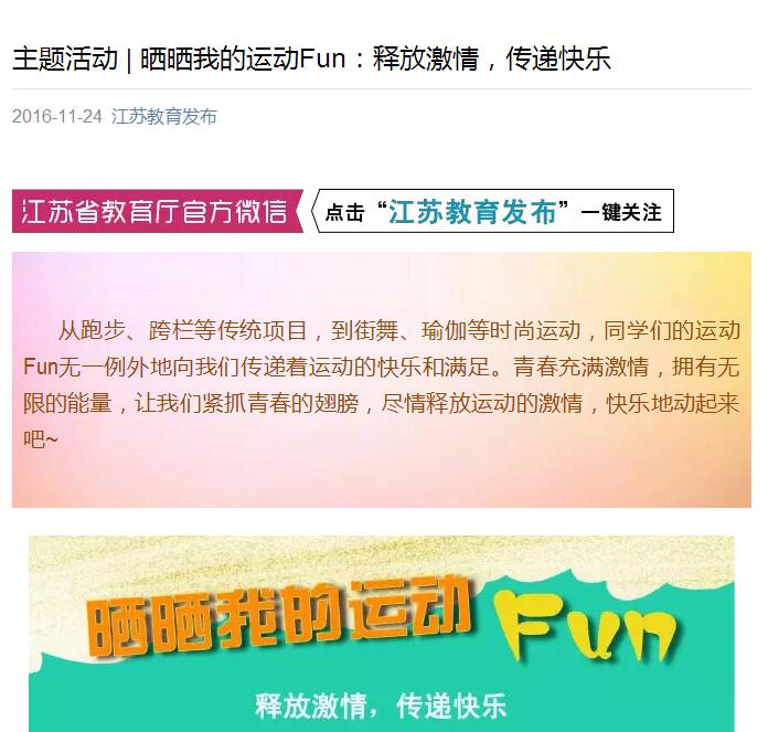 江苏教育微信——主题活动 | 晒晒我的运动Fun:释放激情,传递快乐