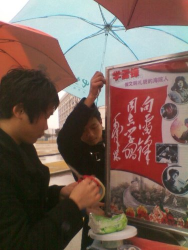 3月3日,青年志愿者协会的同学们冒雨开展校内宣传活动,为全院范围的“学雷锋、展青春、建新功”活动营造氛围。