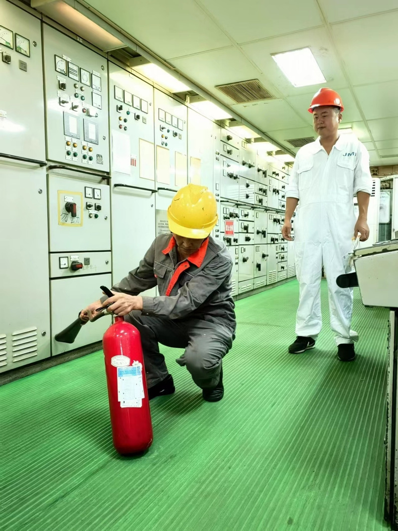 随后全体驻船人员在张海峰主任的带领下查看了系缆和锚链的状况、测试了甲板绞缆机和锚机、检查了机舱、厨房、教室、办公和住宿区域等重点防火部位,检查了灭火器材、测试火灾报警装置。对现场发现的问题能立即整改的做了整改,不能立即整改的做好记录,制定整改计划,不给风险隐患留死角。