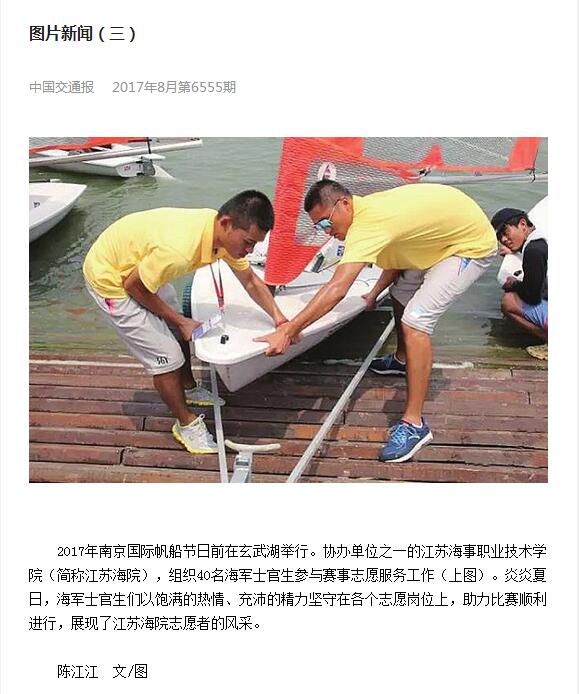 中国交通报——江苏海院参与2017南京国际帆船节赛事志愿服务工作
