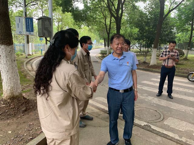 在每个重要的工作站点,田乃清一行与坚守岗位的员工进行了热烈的交流互动。在行政楼、体育馆、操艇站,对物业人员在校园和楼宇的环境美化与保洁等方面做出的努力给予赞赏,勉励他们继续发扬劳动人民艰苦朴素的精神;在校园南、北门,对安保人员全天候的勤劳付出给与肯定,要求他们严格按照学校防疫办针对校门管理的要求,再接再厉,有礼有节;在食堂餐厅,对食堂管理者和员工能够克服疫情带来的不利影响,积极应对,尽其所能,保障师生食品安全和优良品质给与好评;在学生公寓,详细了解了毕业生离校期间宿舍管理、学生行李托管等情况;在医务室,向医护人员详细询问了防疫消杀等物资储备与消耗、近期师生就诊流程、药品库存管理等情况;在动力中心,详细检查了节假日值班和动力应急保障等情况。
